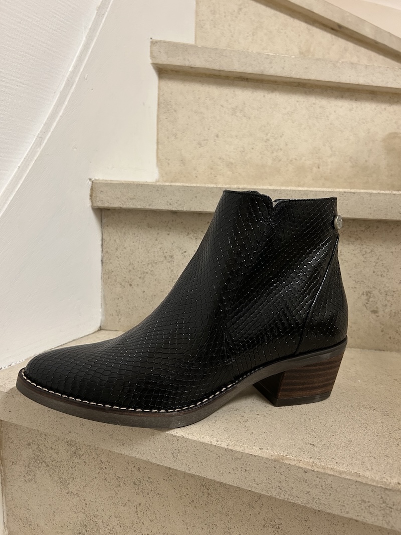 Bottines Romy – Les Pymprenelles – Cuir Premium – Noir Python / Kaki / Léopard