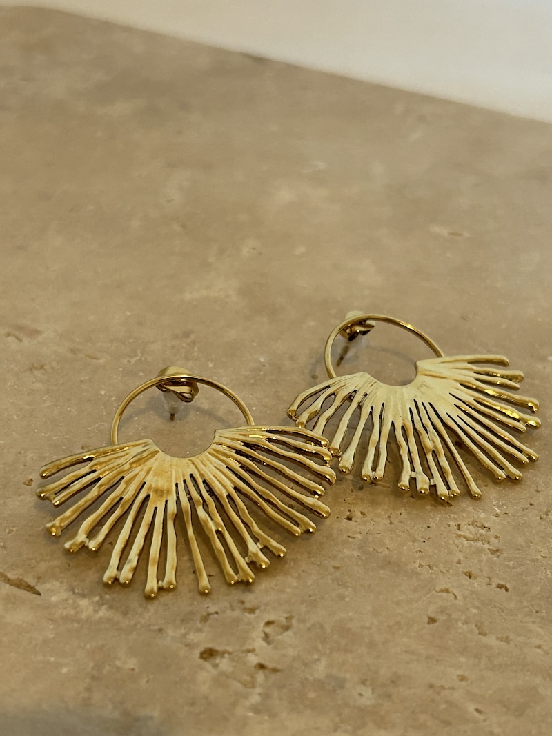 Leur forme soleil ornée de rayons texturés crée un effet spectaculaire tout en restant élégant et féminin.