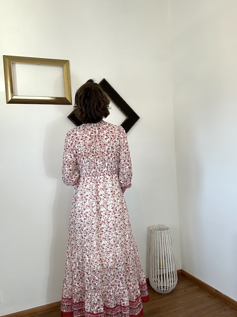 L’élastique sous poitrine marque joliment la taille et crée un tombé fluide qui allonge la ligne jusqu’à la cheville.