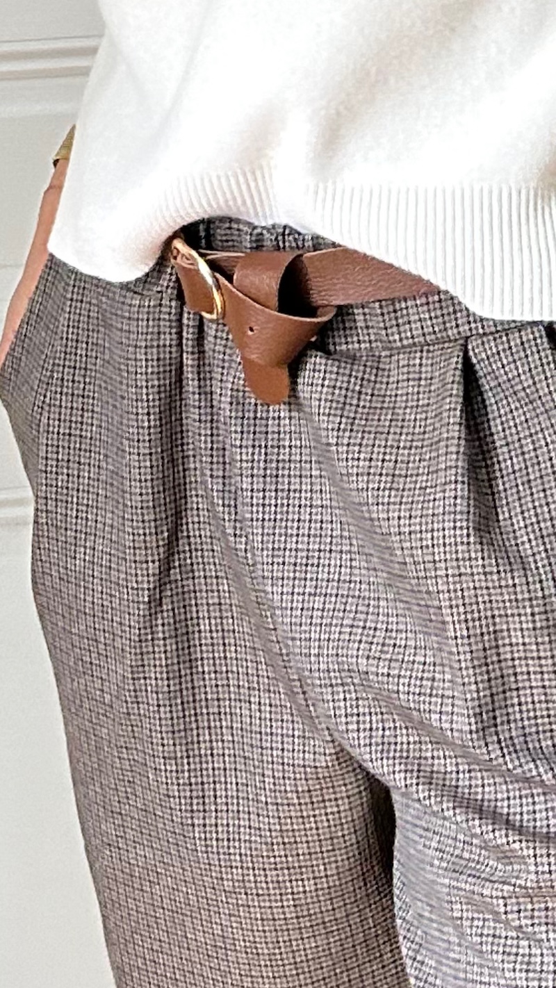 Le motif écossais, intemporel et tendance, revient en force cette saison. Décliné en marron, il s’accorde parfaitement avec un pull oversize, une chemise blanche ou une veste cintrée.