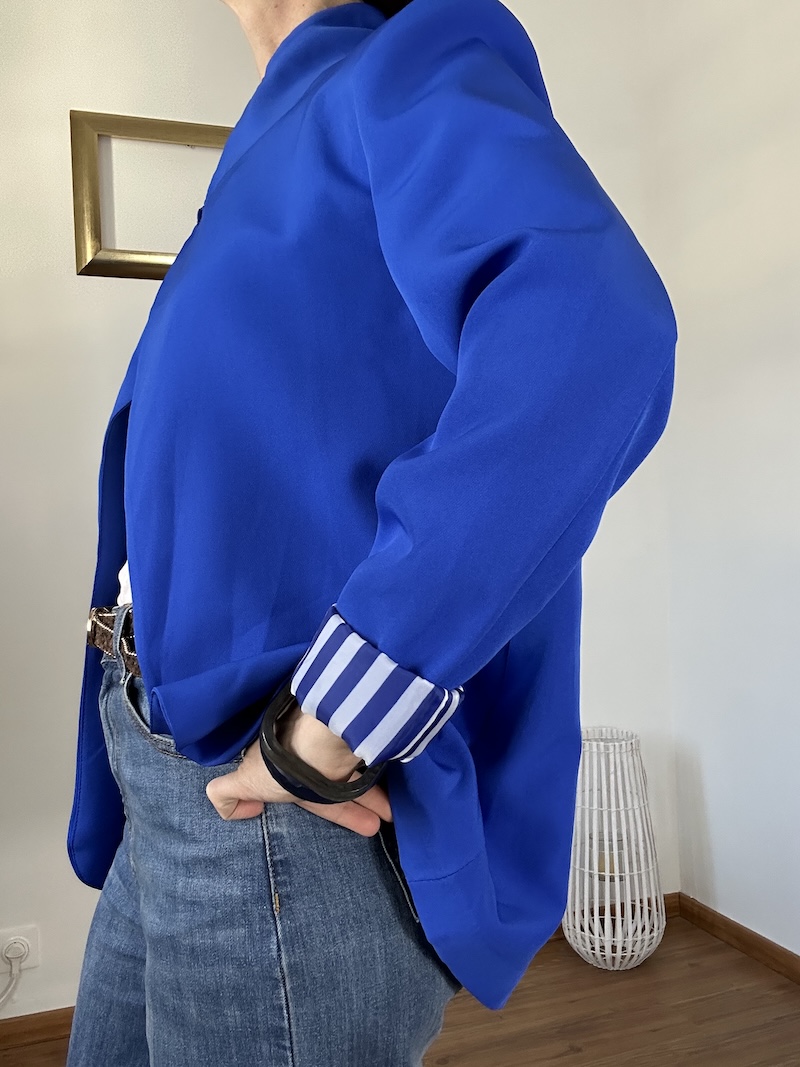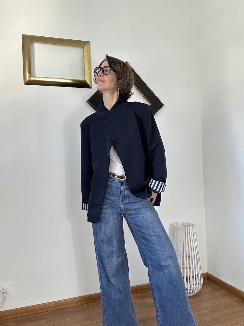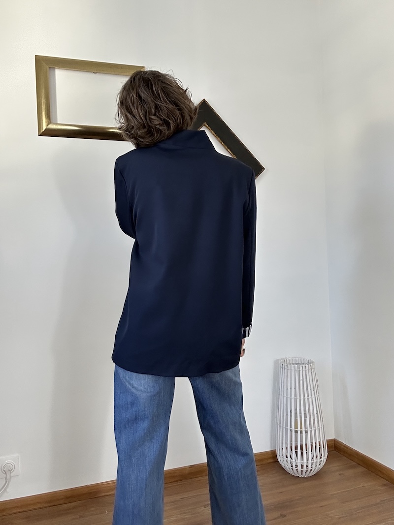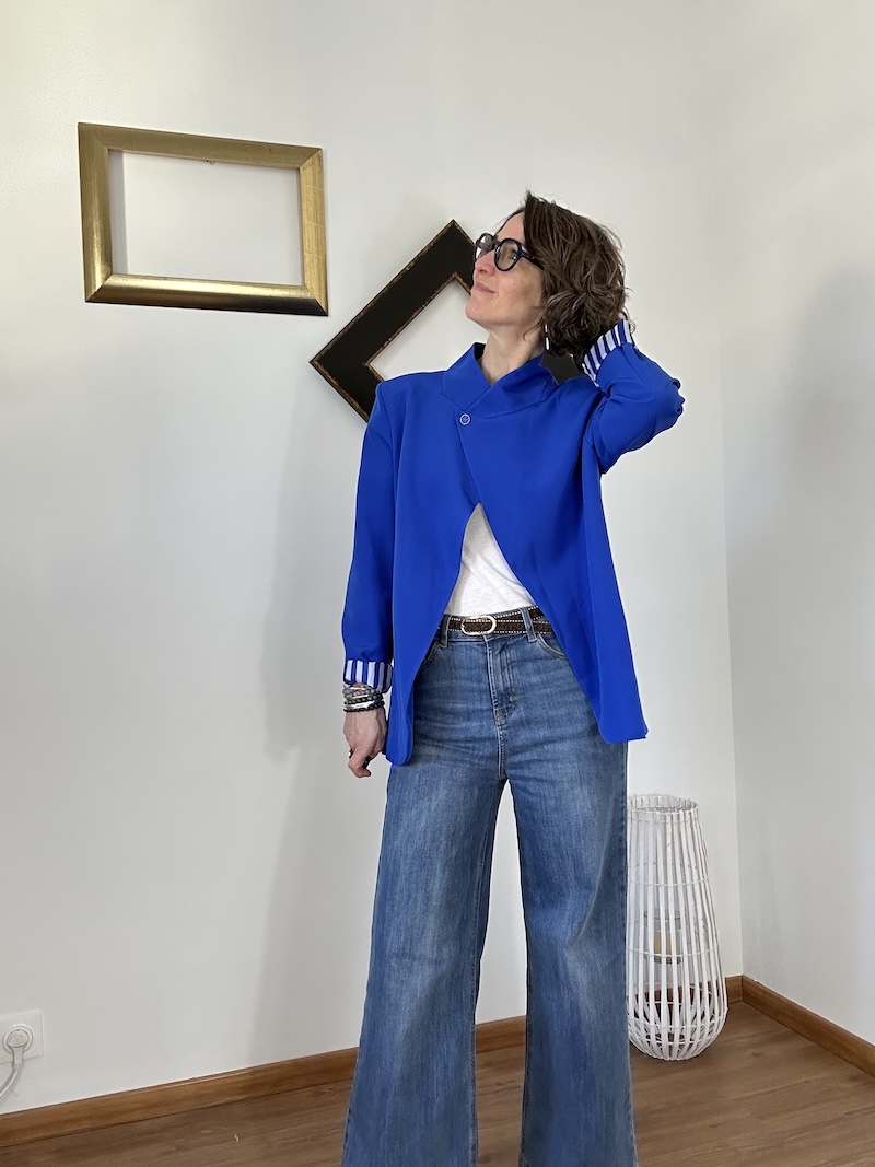 Veste asymétrique femme Made in Italy – Bleu électrique ou bleu marine – Coupe originale