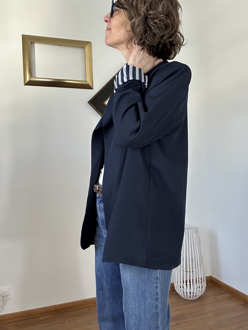 Son vrai plus ? Sa doublure rayée bleu marine, subtile mais pleine de caractère, qui se dévoile au gré des mouvements ou d’une manche retroussée.